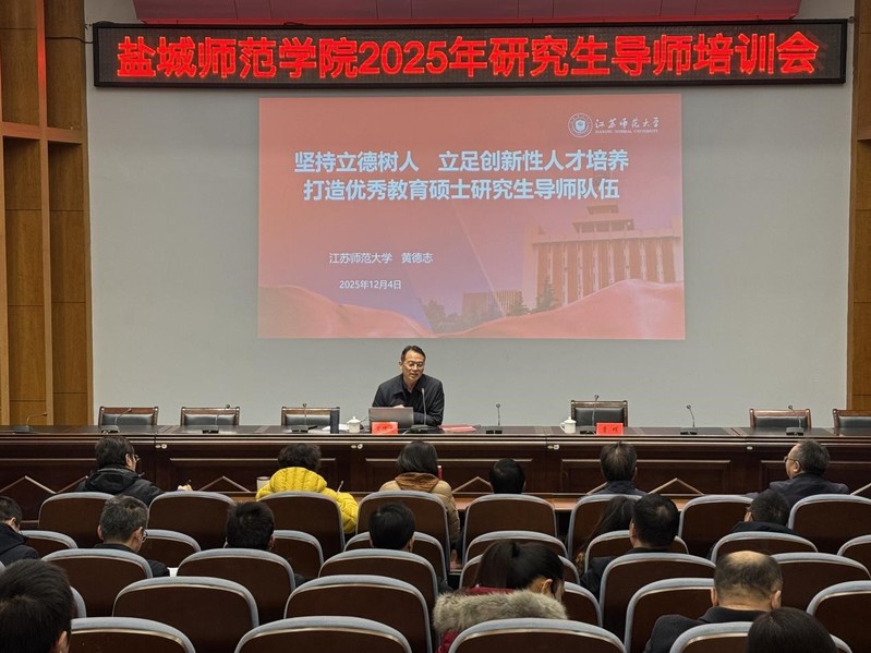 为全面落实立德树人根本任务,进一步提升教育硕士研究生培养质量与管理水平,12月4日,我校在新长校区厚德楼二楼西会议室举办2025年教育硕士研究生导师培训会。江苏师范大学党委常委、副校长黄德志应邀做专题培训。会议由研究生处处长曹明主持,教育硕士研究生导师及研究生处工作人员参训。